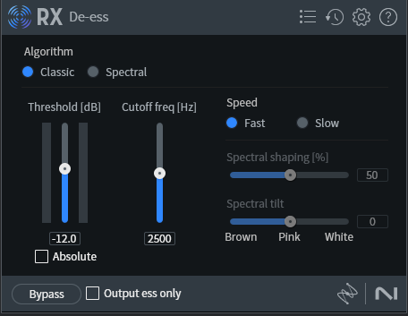 iZotope RX De-ess:去除咝音(Sibilants)。