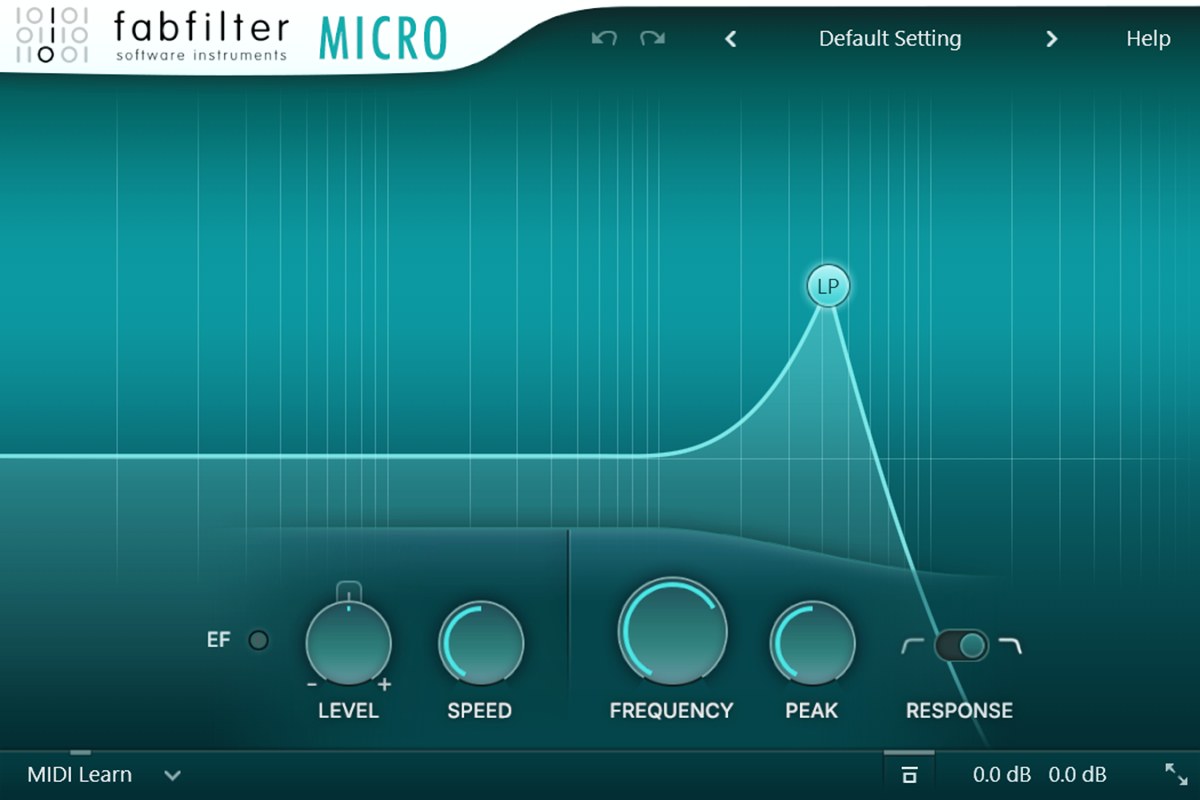 FabFilter Micro:轻量级滤波器,专为简单滤波、音色塑造和创意滤波效果而设计。它继承了 FabFilter One 合成器中著名的共振、尖叫式、饱和型滤波器,并加入了包络跟随器(Envelope Follower)来调制滤波频率。