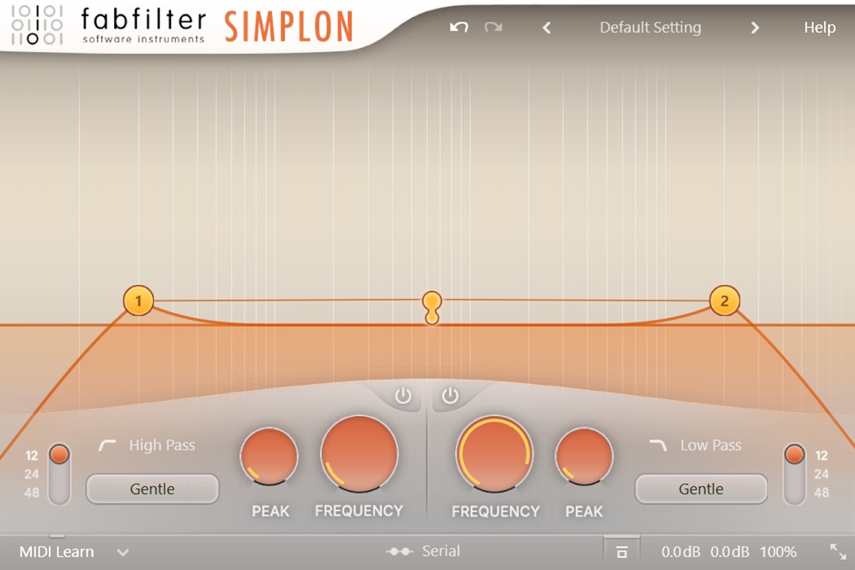 Simplon:低通和高通滤波器,具有两个高质量的多模式滤波器和一个交互式滤波器显示屏。用于频率调节。 - FabFilter