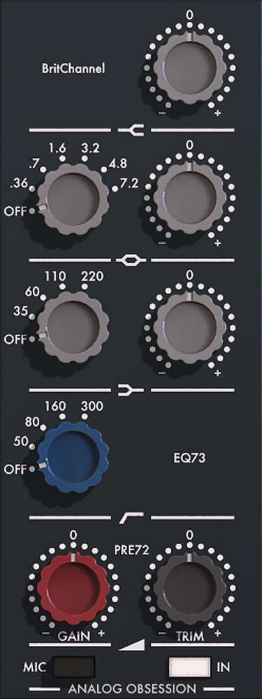 BritChannel:通道条插件,模拟经典英式 Neve 1073 硬件,它将话放、三段均衡器和高通滤波器结合在一起。 - Analog Obsession