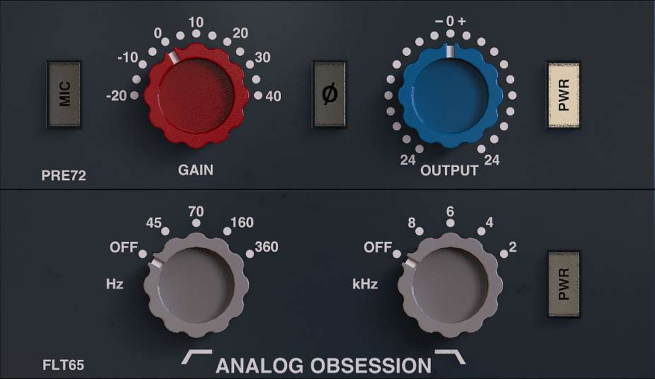 Analog Obsession BritPre:内部采用了与 BritChannel 相同的前置放大器仿真模块,还增加了高低切滤波器。