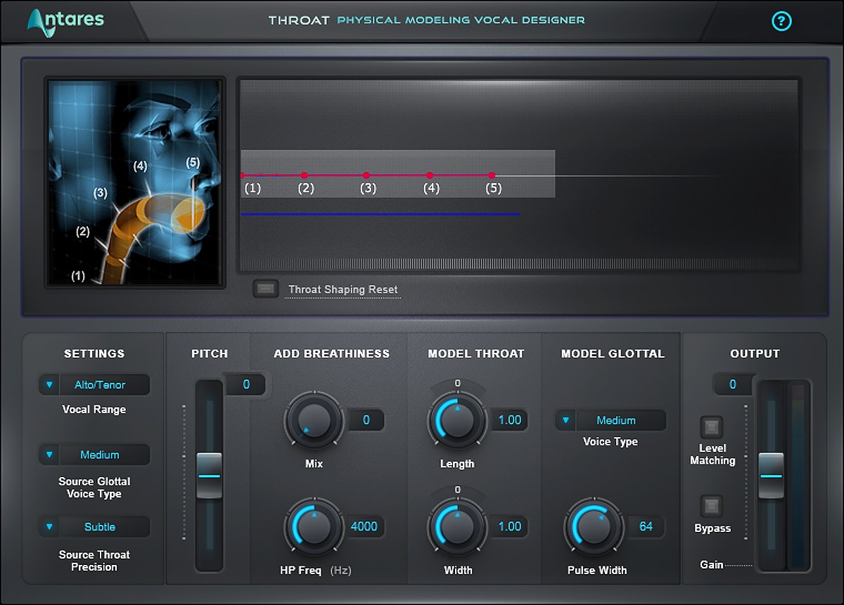 Throat:物理建模声乐设计师,调整人声的音调和共振峰。它通过实时改变音调和共振峰,为声音增添更多的变化和表现力。 - Antares Avox
