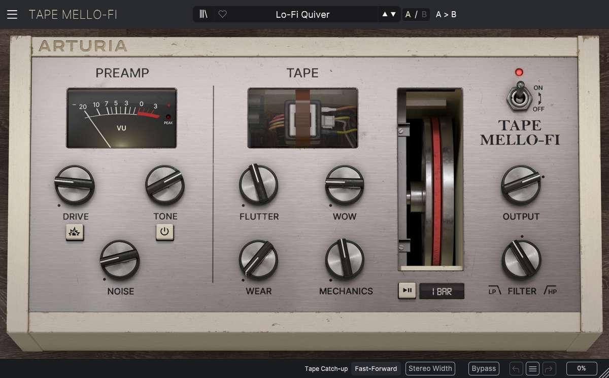 Arturia Tape Mello-Fi:专业 Lo-Fi 磁带模拟效果器,模拟经典 Mellotron 磁带机的独特低保真(Lo-Fi)音色。具有音高调制、噪音、饱和、立体声增强和 Lo-Fi 功能。通过算法模拟老式磁带录音机的失真、噪音和温暖感。
