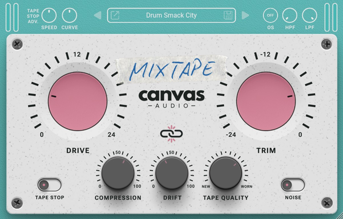 Mixtape:磁带饱和效果器,重现经典卡式磁带温暖、粗粝、富有情感的声音质感而设计。还融合了压缩、滤波、磁带停转(tape stop)、噪声模拟等复古元素。 - Canvas Audio