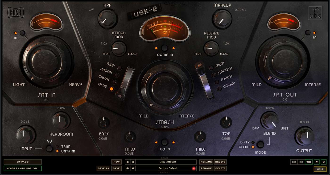 Kush Audio UBK-2:压缩饱和插件,专为音频制作设计,提供灵活的动态控制和音色处理功能。基于 Gregory Scott 为 UBK Fatso 硬件开发的奇特且激进的曲线进行精确建模。