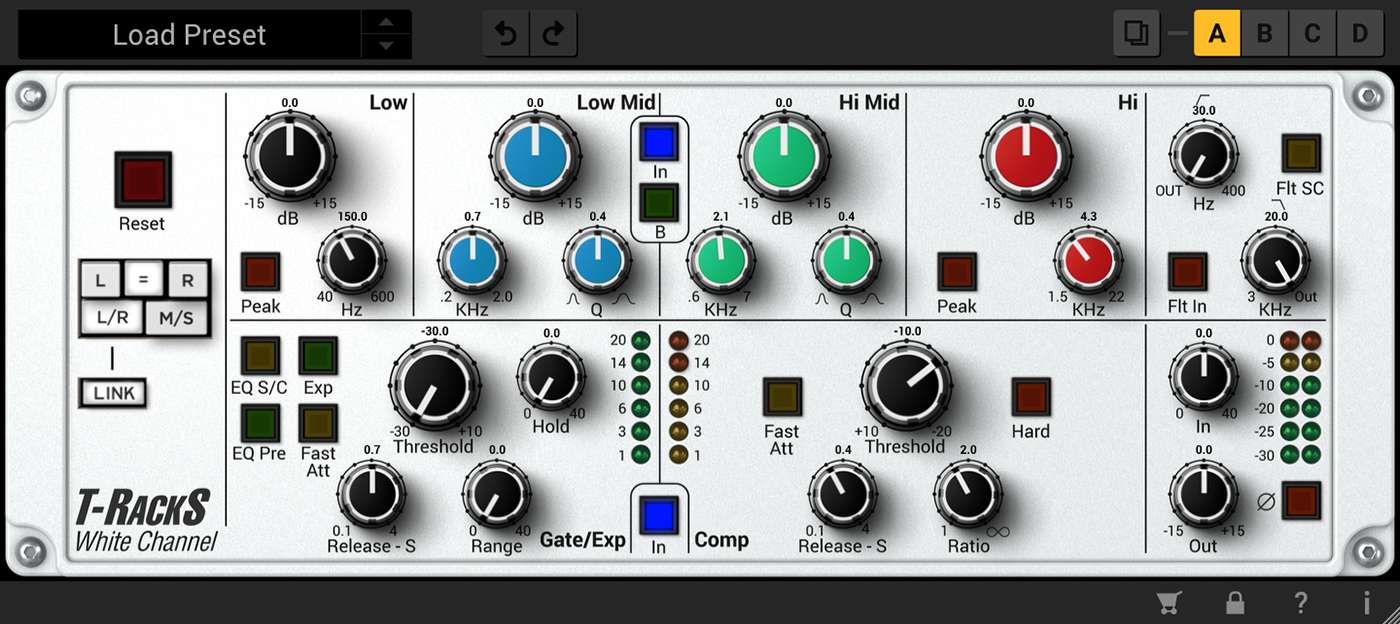 White Channel:通道条,模拟美国经典 API 调音台。集成了均衡器、去咝声、动态处理和瞬态整形等功能。 - T-RackS Joe Chiccarelli