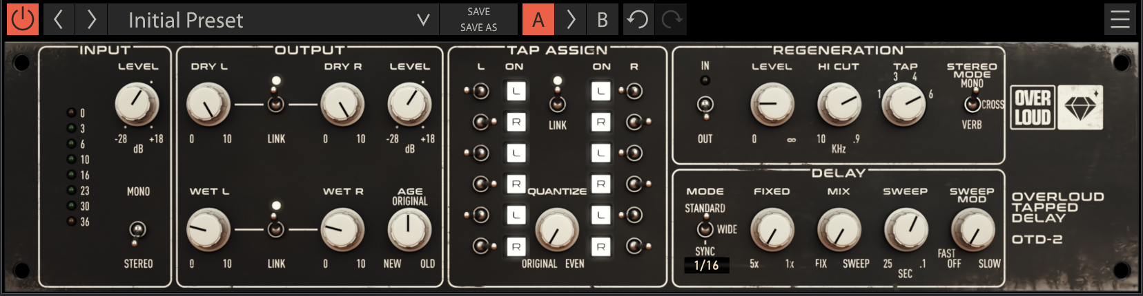 Overloud Gem OTD-2:Overloud Tapped Delay 是对独特模拟处理器的重新创建,可提供调制抽头延迟以及声音扩展效果。6 个模拟 bucket-brigade 延迟可以单独切换和平移以创建自定义延迟模式。全新!可调整大小的图形界面,忠实再现原始的扩音音调,每个通道 6 点延迟,带独立声像控制,立体声操作模式,左右声道有单独的控件,双单声道、立体声和混响模式允许创建更宽的音景,30 倍延长延迟时间,带 BPM 同步选项,用户可调节的桶式音调着色,双 LFO 电路,带可控扫描速率,多级撤消-重做,A/B 比较,大量在真实混音会话中设计的预设。