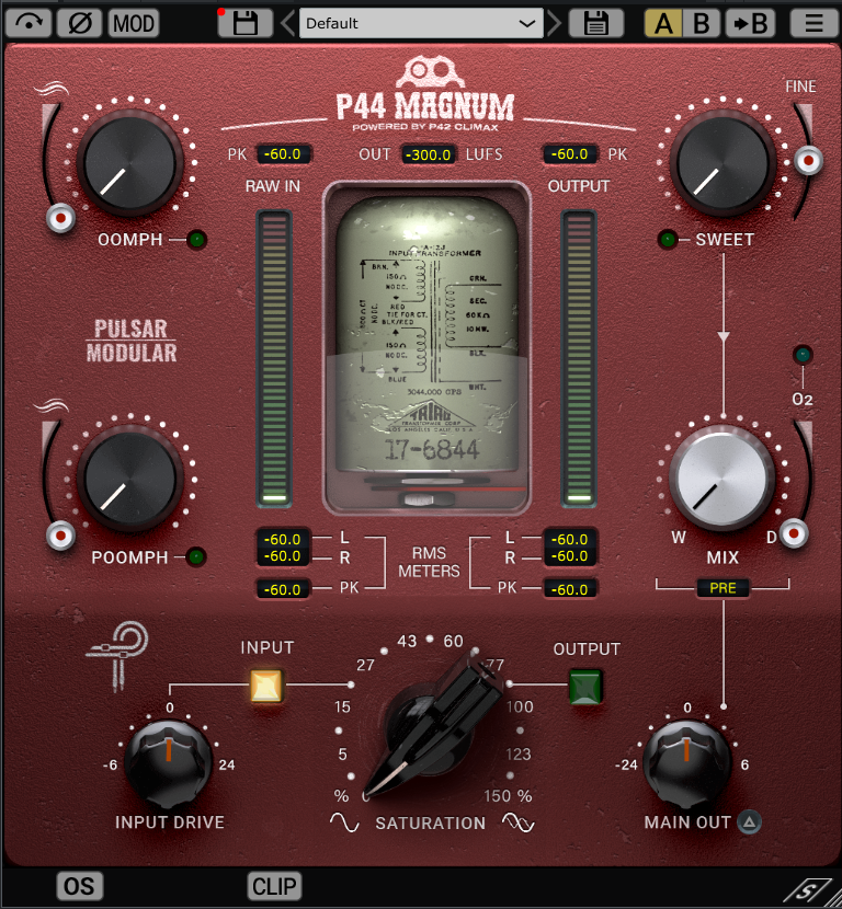 Pulsar Modular P44 Magnum:饱和激励器,继承了 P42 Climax 的标志性饱和度,并采用了全新设计的电路。Oomph和Poomph电路:用于低端整形的电路,能够调整音频的低频部。O2电路:谐波激励器,为音频添加丰富的谐波成分,增强动态和层次感。