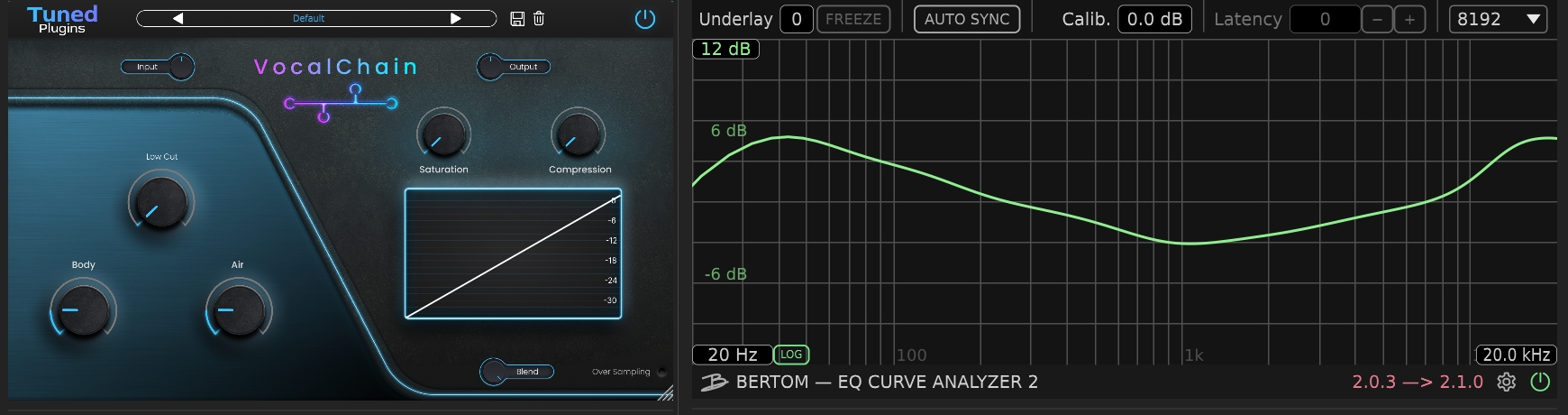 Safari Audio Tuned Plugins Vocal Chain:人声处理通道条插件,专为人声处理设计,可将原始录音转化为专业音质。占用 CPU 很低。适用于提升人声的厚度和空气感。
