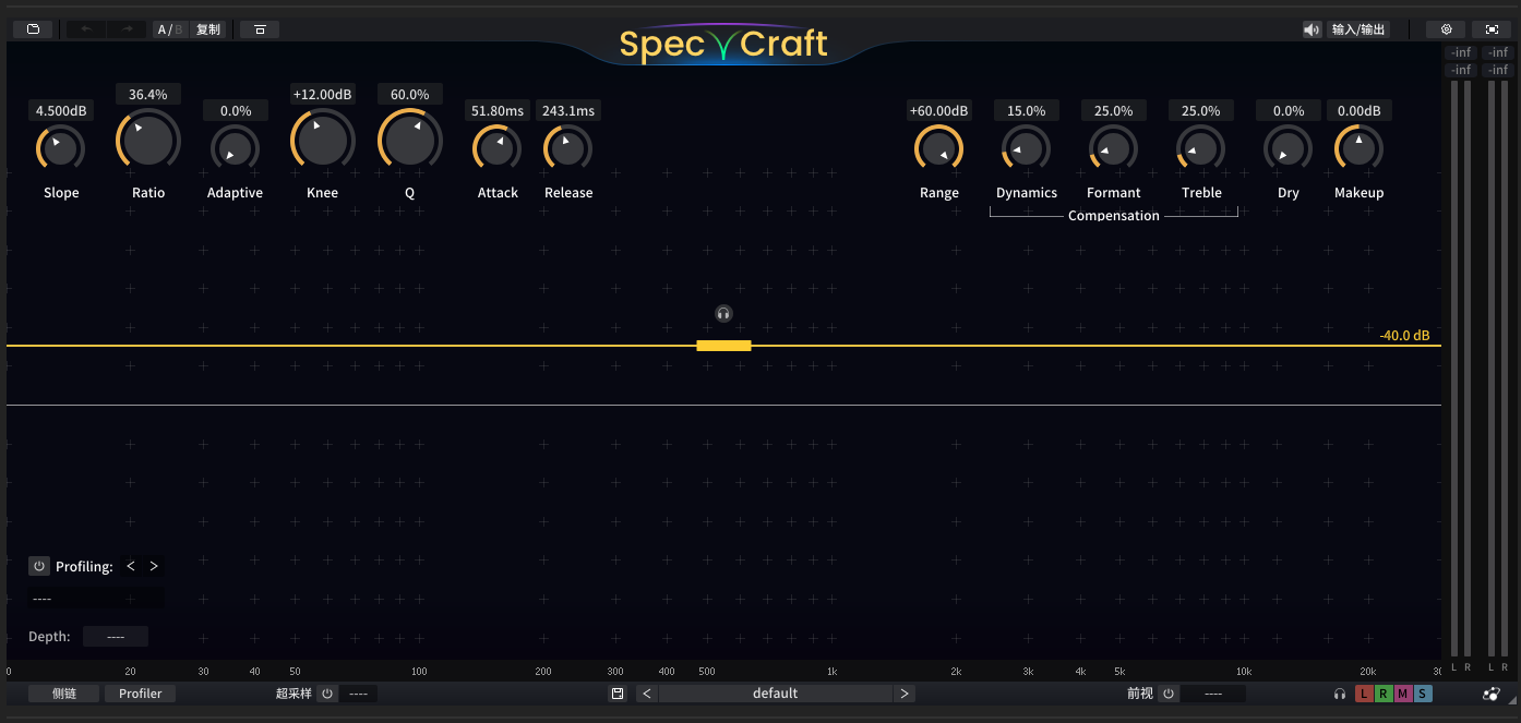 TBTECH SpecCraft:动态共振抑制器、频谱压缩器和智能均衡器。它专门用于消除混音中最大的敌人:不必要的共振。无论是刺耳的尖叫声还是浑浊的轰鸣声,SpecCraft 都能识别它们,并在每个音频帧上动态应用匹配的抑制。