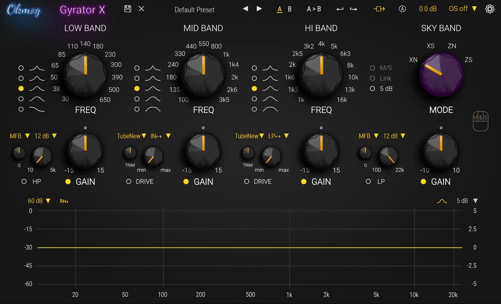 Okmog Gyrator X 不仅仅是一个频率调节工具,它通过四个核心模块,为用户提供了一套完整的“模拟电路实验室”,从低频的厚重感到高频的空气感,再到谐波染色的细腻度,全方位重塑声音质感。