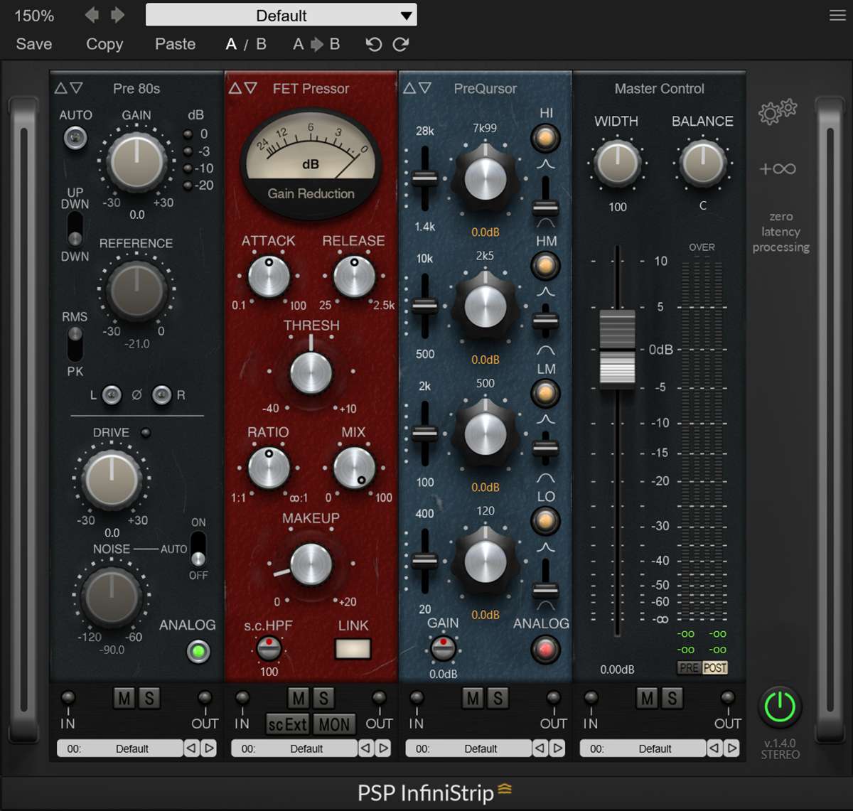 InfiniStrip:通道条插件。提供了30个处理模块,包括前置放大器、滤波器、压缩器、均衡器、限制器、动态模块、控制模块和特殊模块等。 - PSP Audioware PSP