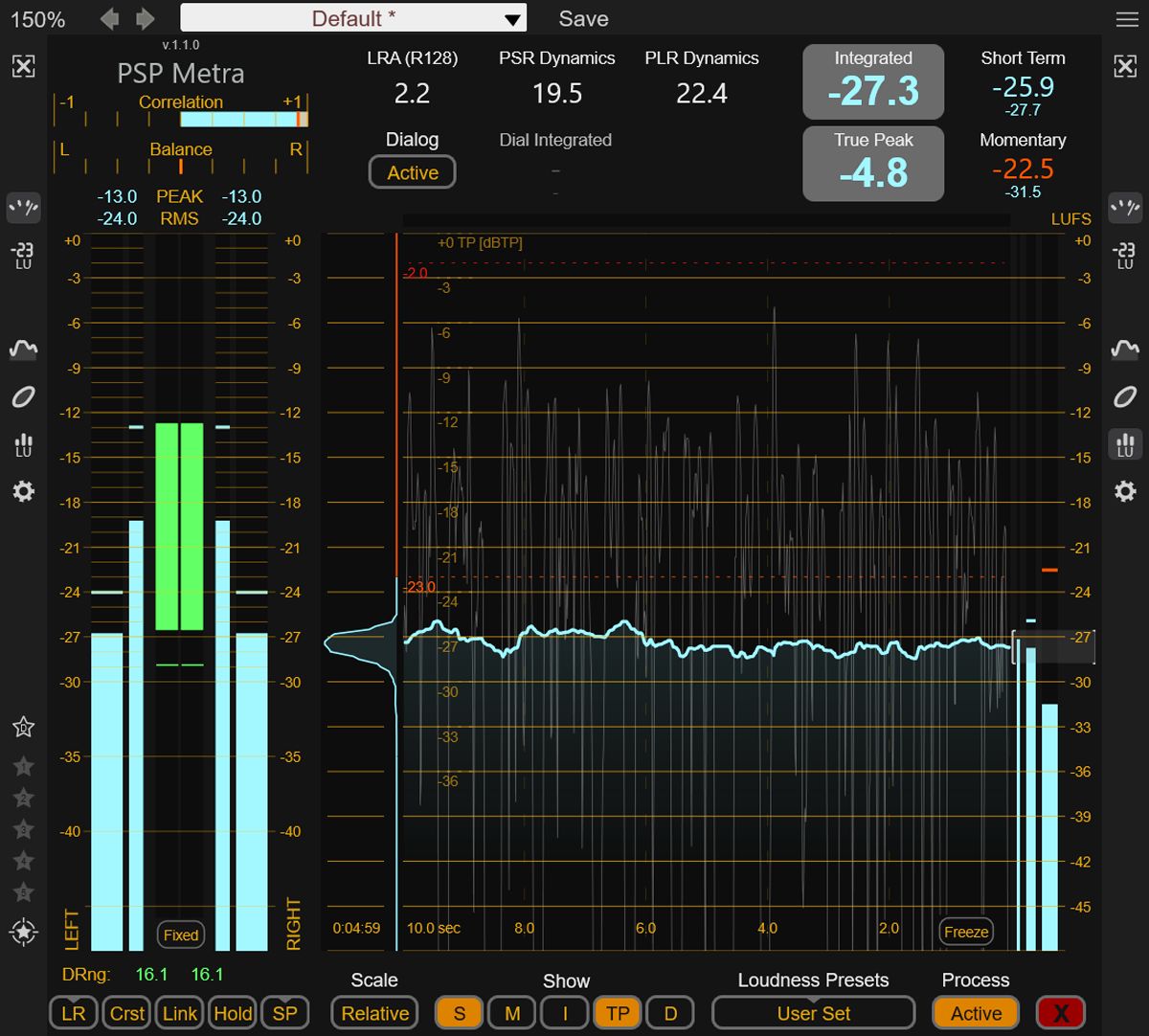 PSP Audioware PSP Metra:实时分析与计量插件,专为在响度、动态范围和立体声成像等关键决策环节中需要高度准确性的用户而设计。该插件在一个统一的界面中整合了专业级的电平、动态、立体声与响度计量功能,支持 Sample Peak 与 True Peak、PPM、RMS、VU,以及动态范围与峰值系数测量。同时,PSP Metra 还提供立体声相关度与平衡显示,以及示波器(Goniometer)与 Lissajous 图形,帮助用户直观判断立体声宽度与相位关系。在响度计量方面,PSP Metra 完全符合当前主流标准,支持 LUFS、LRA、PLR、PSR,并可选提供对白综合响度(Dialogue Integrated Loudness)测量。所有关键数据始终清晰呈现,使工程师能够自信地监控现代音乐制作、母带处理以及广播级音频交付。