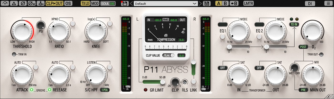 - P11 Abyss:RMS 压缩器,适合平滑、温暖、音乐性的动态控制。