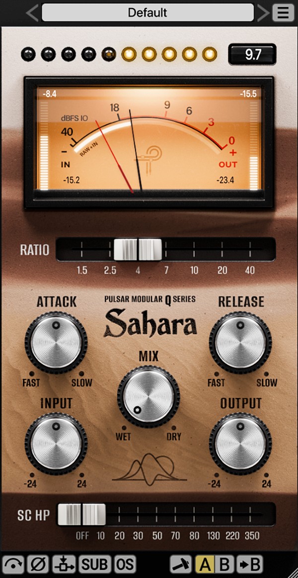 Pulsar Modular Q Sahara:压缩器,其设计哲学是简化操作、专注音乐性、强调直觉与手感。它并非多功能万能工具,而是专注于提供一种快速、直观、富有音乐感的压缩体验。