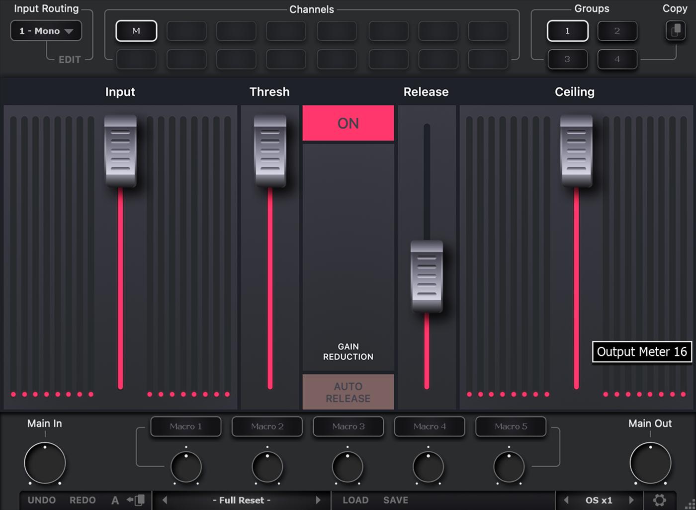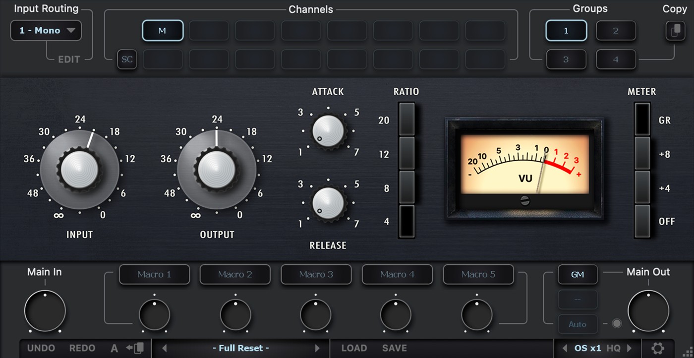 - Meter:表头;切换显示模式,包括增益缩减(Gain Reduction)、Output+8、Output+4 或关闭(Off)。