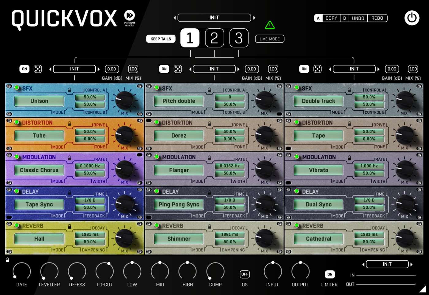 United Plugins - Instant Audio QuickVox:旨在为任何使用计算机效果的音乐流派提供强大且富有创意的人声处理,同时保持极低的 CPU 占用率。特别适用于基于计算机的人声处理和现场表演。