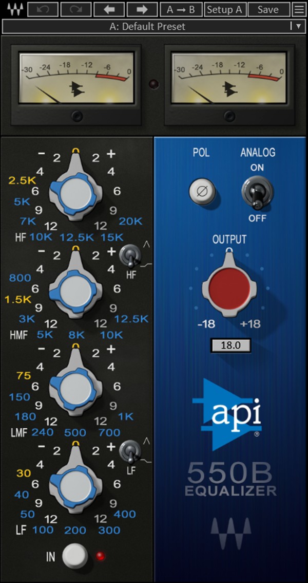 Waves API-550B:是 API-550A “进阶精密版本”。在保留 API 经典音色的基础上,提供了更精细的控制和更宽的频率范围。它被誉为“极度多功能的均衡器”,特别适合需要精细雕琢的场景。
